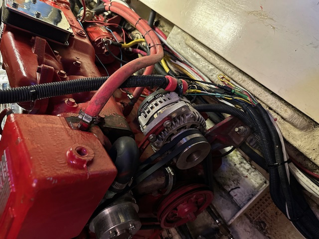 After buying our Kadey-Krogen, Brian accidentally discovered that our alternator was HOT to the touch even though the engine had not been on for hours. Had someone look at it, but he couldn't figure it out other than he thought it was getting current from the batteries, something that should never happen. Someone suggested that maybe when the engine was shut off, the key wasn't quite in the off position, but that wasn't the case. After we ran the engine a second time and then shut it down, the alternator cooled off like it was suppose to. About two to three weeks later after our first day traveling to Belhaven, NC, the problem recurred. Brian called a couple of marinas and got a referral to a Mr. Harlis, a local fellow who told us he would most likely see us tomorrow as this is a major problem.