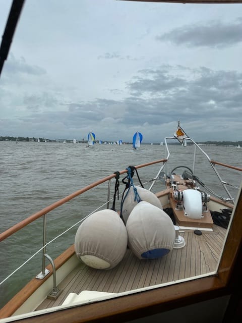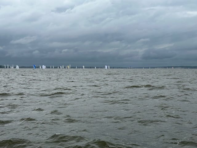 The skies stayed overcast all day and the waters calmed down for most of the trip. Once we got close to Annapolis, we could see numerous sailboats participating in a race; right in the middle of the track we were on, so we detoured quite a way around them to get to our anchorage. The anchorage was too far out in the open, so we opted to pick up a mooring ball – still a bit rolly, but it would have been worse in the anchorage.