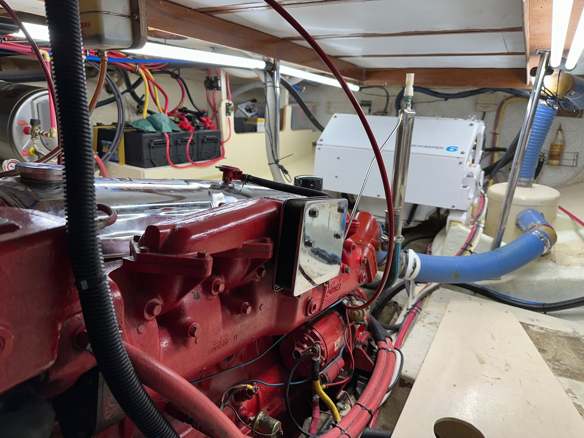 Brian spent over 3 hours in the bilge putting up new lighting fixtures and taking down old wires and brackets that appear to have been part of original fittings.