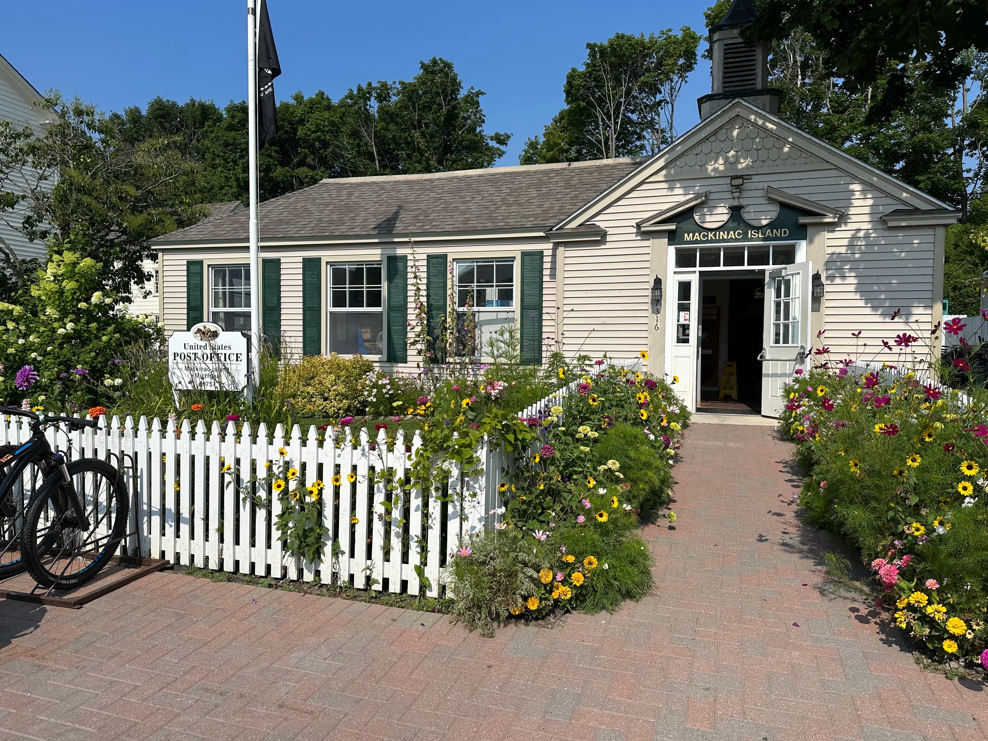Walked about ¾ of a mile to a breakfast place. They were making fresh donuts and other pastries; hard to believe, but we passed on them. We walked to a nearby grocery store for a few items. Once back on board, readied ourselves for a trip on the ferry over to Mackinac Island. There are several ferry ports just north of the Mackinac Bridge. Thankfully, there was one within a short walking distance. The ferry was packed and the ride was about 45 minutes. First stop was the post office to pick up the collets, then we strolled around. It was so darn hot and sticky; felt like we were melting and it didn’t help that there were so, so many tourists. If we were to stay on the island for a few days during high season, it would be best to get up early and get out and about, then lay low for a bit, then maybe head out again once the majority of the tourists that came by ferries, leave for the day. Neither one of us is comfortable with crowds. On the few streets we roamed, all of the houses and miscellaneous buildings were well maintained and gorgeous flower beds. Fudge seems to be very popular; Brian bought some fudge and Lauren got her dark chocolate turtles. The ferry was practically empty on our return to St. Ignace Marina so we sat on the upper deck and enjoy the breeze; cooled off all the sweat. Once back on board, Brian took off to the Ace Hardware store to buy stainless steel screws so we can now put on the chafe plates on cap rail on both sides of the boat. Lauren took Heidi out to stretch her legs (Heidi’s). Back on board, Lauren took a shower (heaven) and started another load of laundry. Tomorrow, we head out to Petoskey City Harbor Marina. Brian says there are a lot of city marinas along the east coast of Michigan; they are less expensive than privately owned marinas. Normally we would anchor for a few days and then get a marina, but since the city marinas are reasonable, why not?