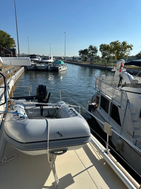 Our last day at Heritage, Bryce Wallace, the marina host, gave a group of us Loopers a tutorial of what to expect after leaving the marina to the upper Mississippi. There was a lot of information, a bit overwhelming. Earlier in the day, we also got our mast, boom, antennas and flopper stoppers up off the fly deck; most bridges will be high enough to navigate under. We will encounter train bridges, but for the most part we were told they will be in the up position; if not, we just call and ask when the next opening will be.