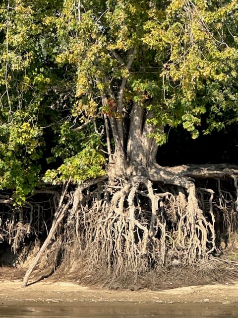Left Hennepin Harbor Marina at 7:00 along with Pelican. We navigated from the fly bridge even though it was a bit chilly and then it lightly rained for about an hour. Along the way we saw bald eagles, white pelicans, large fish jumping out of the water, herons, egrets and lots of vultures. Because the river floods at least once a year, we’ve noticed the roots exposed on trees near the water’s edge; just neat to look at. There were several little orange/red buoys marking what we think are long-line fishing traps. However, state website recommends not eating more than one small fish per week from the Illinois River because the river is so polluted. It is not safe to swim in either. We only encountered two tugs pushing barges, so it was a rather leisurely ride. We arrived in Peoria and docked at Kuchies. Lauren’s looking forward to another meal she doesn’t have to cook or clean up afterwards. Jill invited us over at 3 to learn a new card game (for us) called Jokers. The marina is tiny; our boat and Pelican fit on one dock. There is another dock long enough for one 40ish foot boat and then there are a few finger docks for about 12-16 footers. Tomorrow, we head to Havana and will anchor behind Quiver Island. We are actually looking forward to anchoring.