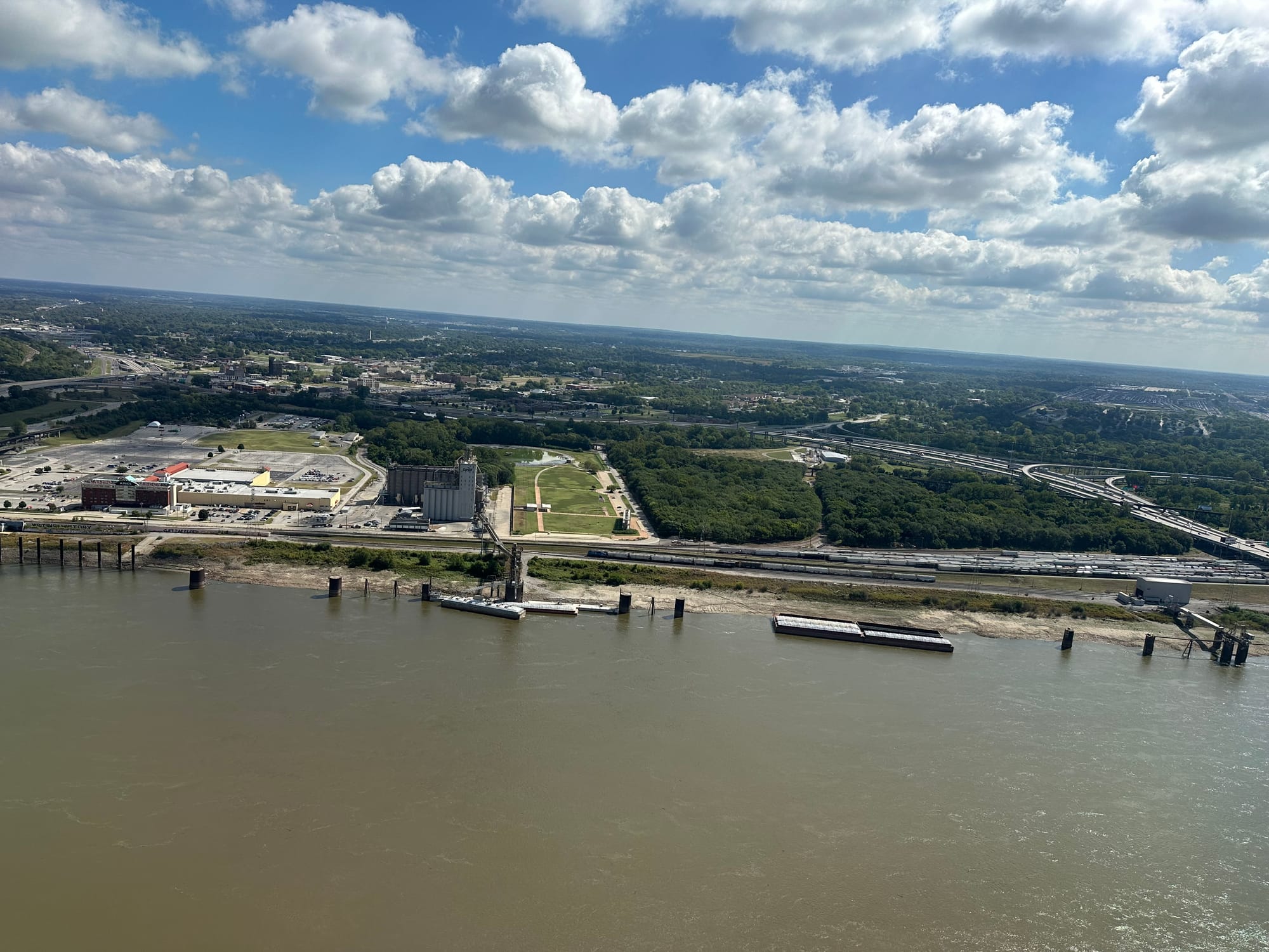 It rained all during the night. We will look into staying an extra day; we can’t get to Green Turtle Bay too early where we plan to leave our boat to go back home for a few days. We are looking forward to visiting St. Louis while here and other places of interest. Plans were made to tour the St. Louis Arch tomorrow with Pelican. We saw that Iron Marriage is also docked here, but were told they are off the boat now and in California.