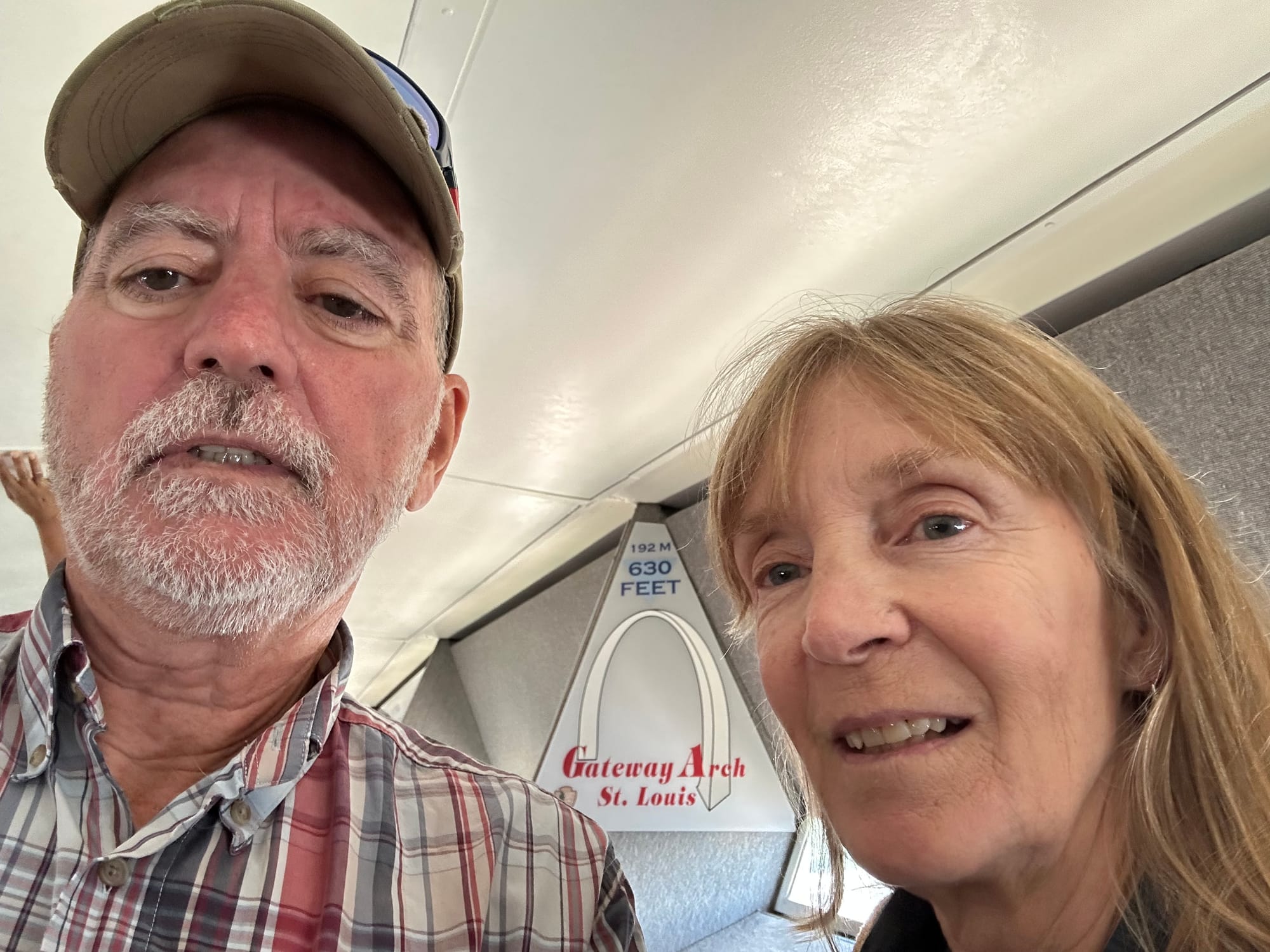 Brian had arranged Hertz rental to pick him up at about 8 this morning. We were going to tour the Gateway Arch across the river in St. Louis, MO. After arranging the Uber, Brian received a call from a Hertz driver stating he was at the marina. That was a full hour and half after the pre-arranged pickup time. It was too late by then to take the ride back to Hertz for the paper work and bring back the rental and then drive to St. Louis. We had tickets for the Arch for a specific time and we would not have made it in time to start our tour. Taking the Uber actually worked to Paul and Jill’s benefit, as they are slowed down by crutches and a cane. The Uber dropped us off right at the Arch; so, no worrying about parking and having to walk a great distance.