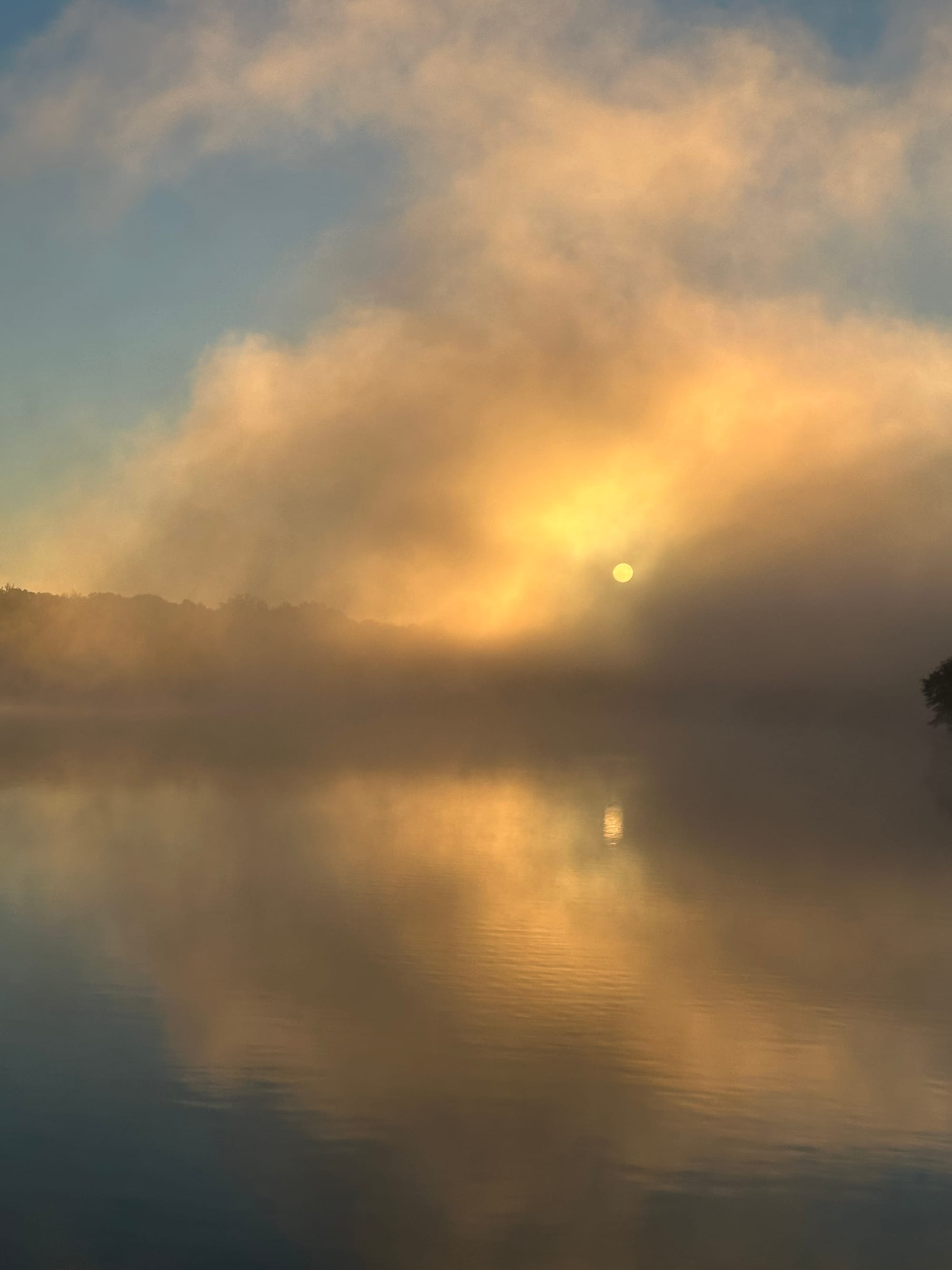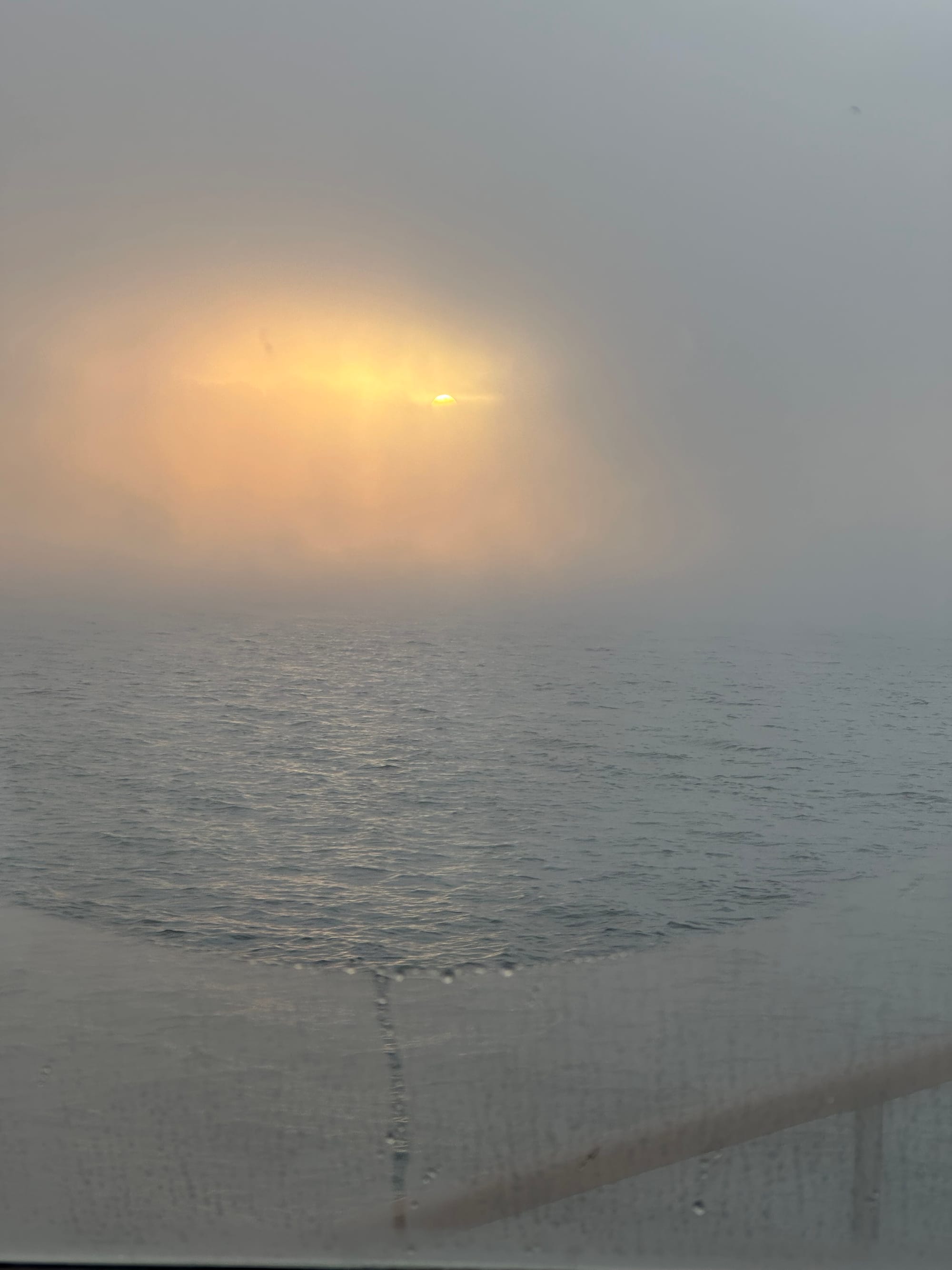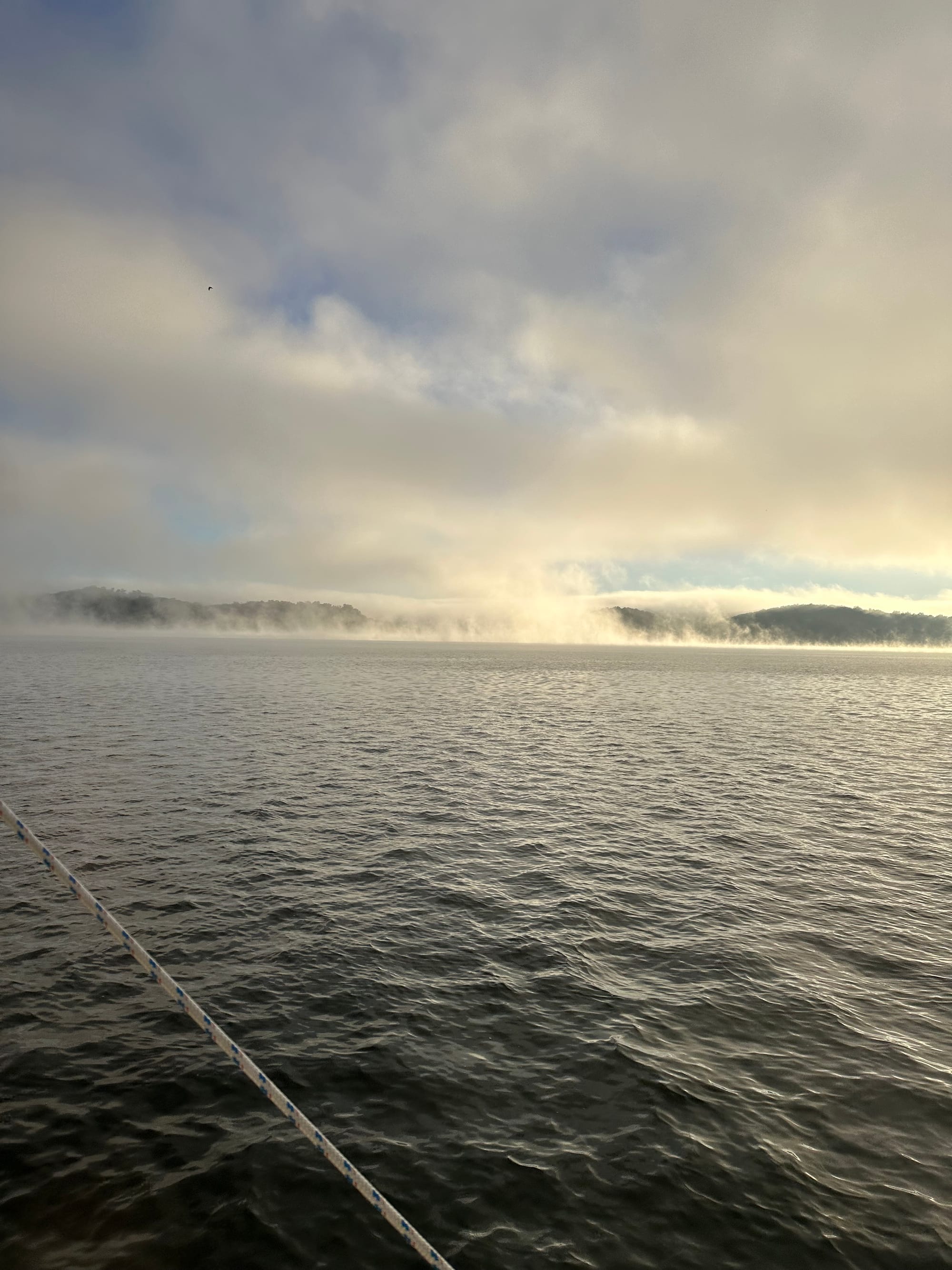 This morning the anchor was up just before 7:00 and we moseyed our way back out to the river. We were so glad we didn’t have fog to deal with. The wind is down and we are moving slightly faster than yesterday. It is so calm, that Lauren went below to the galley and cooked up a delicious breakfast.