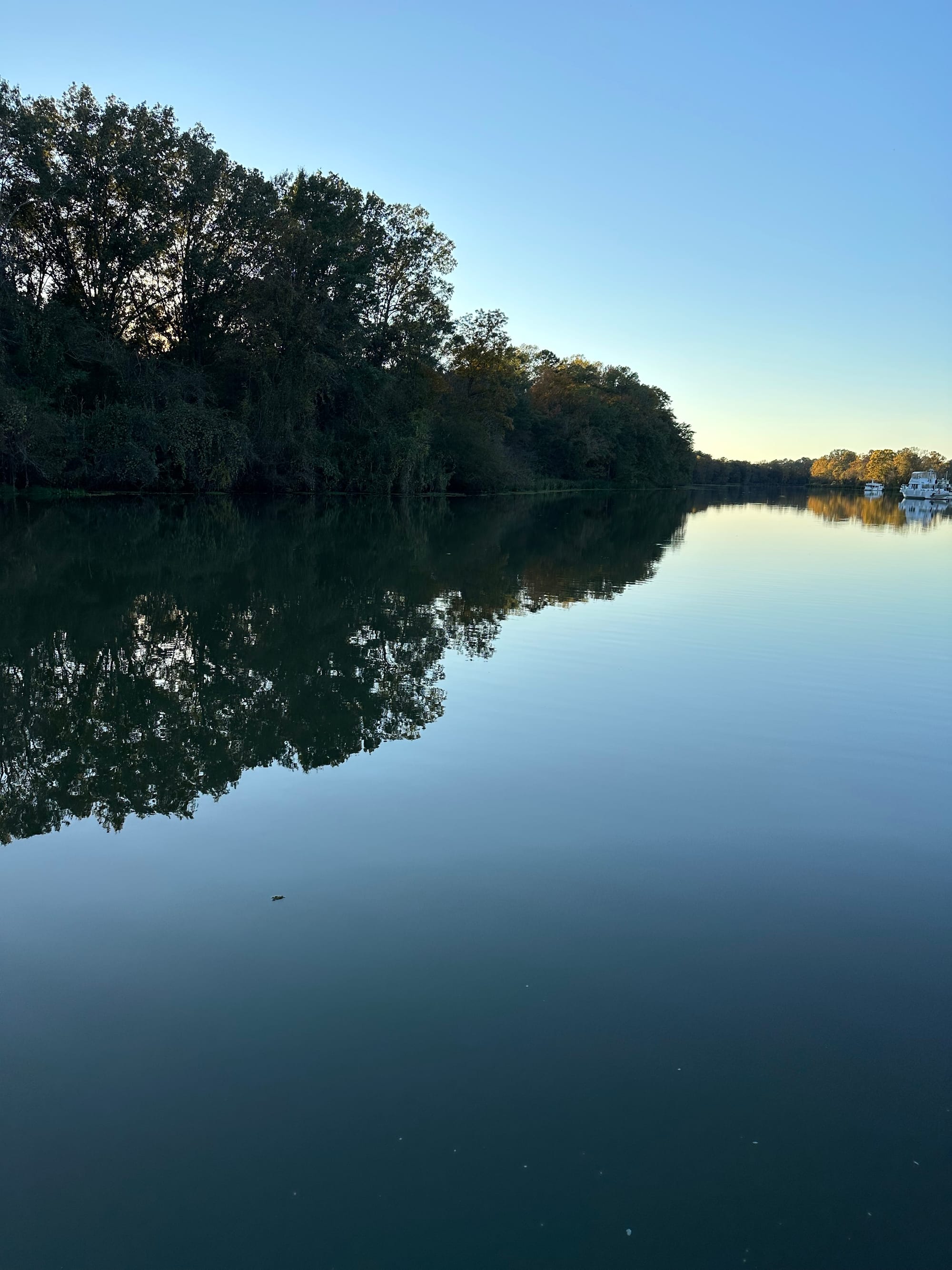 The last two days of travel were pleasant, but long. We saw several flocks of Coots, a water fowl. Also, spotted a few deer, but other than that, no other wildlife. Our anchorage last night was quiet. We were anchored just off the river along with two other boats behind Wolf Island. There was little barge traffic and for the most part, no other boat traffic until we got a bit closer to Florence. The last two days we spent hours on our phones trying to get our medical insurance changed. What a run-a-round. Instead of getting answers, we were told to call another number. We would call that number and again, no answers, but we could call another number. It was so frustrating. Finally found a contact that was answering our questions, but the calls kept getting dropped because of the hills flanking the river. We were able to re-connect and spent another hour discussing our choices. The federal government hasn’t published the new figures for deductibles for the Medicare plans. They should be published by the second week of November. So, we are scheduled for a conference call about then to complete our application. Fingers crossed, that it goes smoothly.