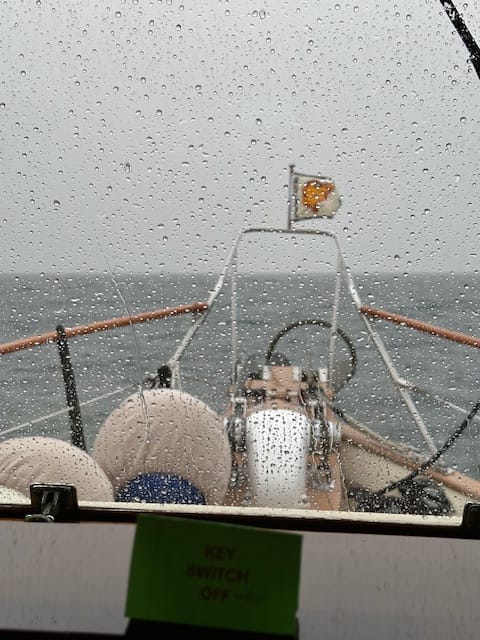 This morning, we left our slip about 6:45 and headed out the channel. State of Grace was also leaving and we were both headed to the same marina – Snug Harbor Marina in Pentwater; we were both able to get slips. Brian started the Seakeeper knowing it would be choppy out there and it was; the waves were between 1.5 and 3 feet and then it poured for a few hours. Again, Heidi was not liking it and knowing that she wouldn’t, Lauren dosed her when she was fed. About a half hour before reaching the breakwater to Snug Harbor, the waters laid down to about a foot. It is windy and rather chilly.
