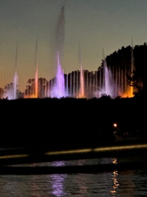 We arrived at our slip in Grand Haven Municipal Marina about ll:30. State of Grace got in a few minutes before us. As we were finishing attaching the lines to the dock, an elderly gentleman stopped by. He seemed intrigued with our boat; had all kinds of questions. He said he never seen this type of boat before and seemed enamored with it; he was going to google it. We tidied up the boat, got Heidi out for a walk and had leftovers for lunch. Grace contacted us and we decided to get together early afternoon to walk about town. We left our boats around 1:30 and checked out the stores. We stopped in a pub; Lauren opted for an espresso martini (it was okay) and the rest had beers. We spent a bit of time there just chatting. Grace loves to play miniature golf and found that they had it right in town; so off we went – it was a lot of fun. Bob and Lauren tied for first with a score of 52 (Lauren had 3 holes in 1), Brian’s score was 53 and Grace came in last with a score of 54. By then we were hungry, so off to an Italian restaurant. Everyone’s meal was good. Back to the boat to get Heidi off for a walk and do her business. Tonight at 9:20 there is a light and water show choreographed to music.