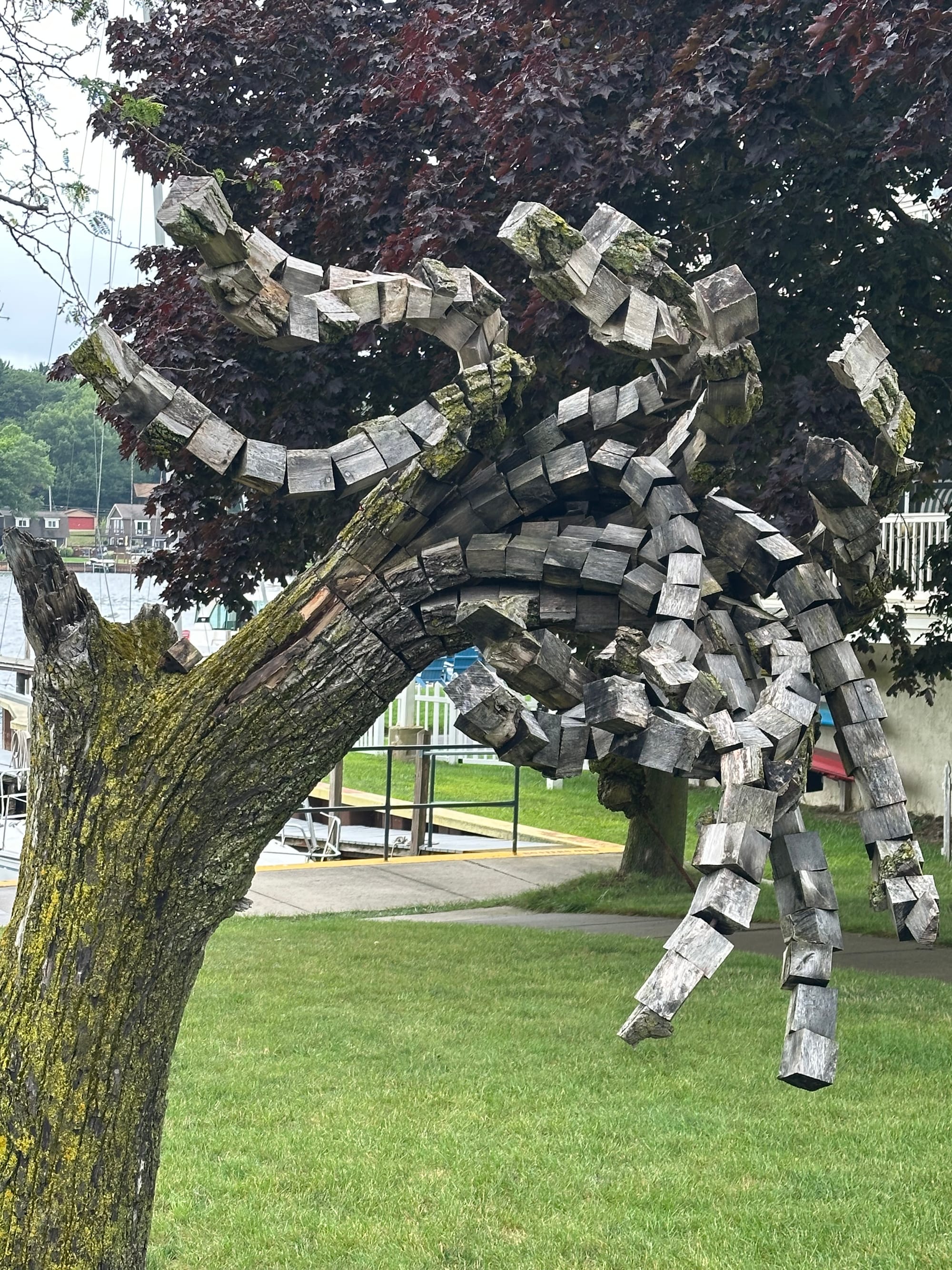 Slept in again (8:15). It’s not like we are out or even up late; could be the sun isn’t shining as early and it was still overcast this morning. Mid-morning we stopped at a bakery; Lauren chose a lemon cookie and coffee; Brian had a cinnamon roll with tea – we were not impressed with the baked goods. Then it was off for a couple mile walk, through the downtown and neighborhoods. Lauren dubbed this town “sidewalk city”. No matter how many streets back from the main road we walked, every street had nice wide sidewalks that were well maintained. We enjoyed our stroll through the neighborhoods checking out the houses and their yards. There were some sculptural art work throughout the town.