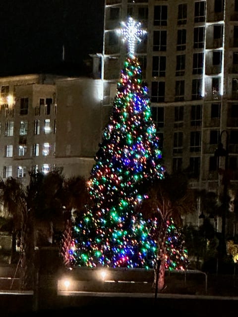 Tonight, there will be a Holiday boat parade. It will go right by the outside dock we backed into, so we will have front row viewing. At the moment, there is a huge sporty fishing boat parked right behind us being decked out with holiday lights and Christmas inflatables. Looking forward to the show.