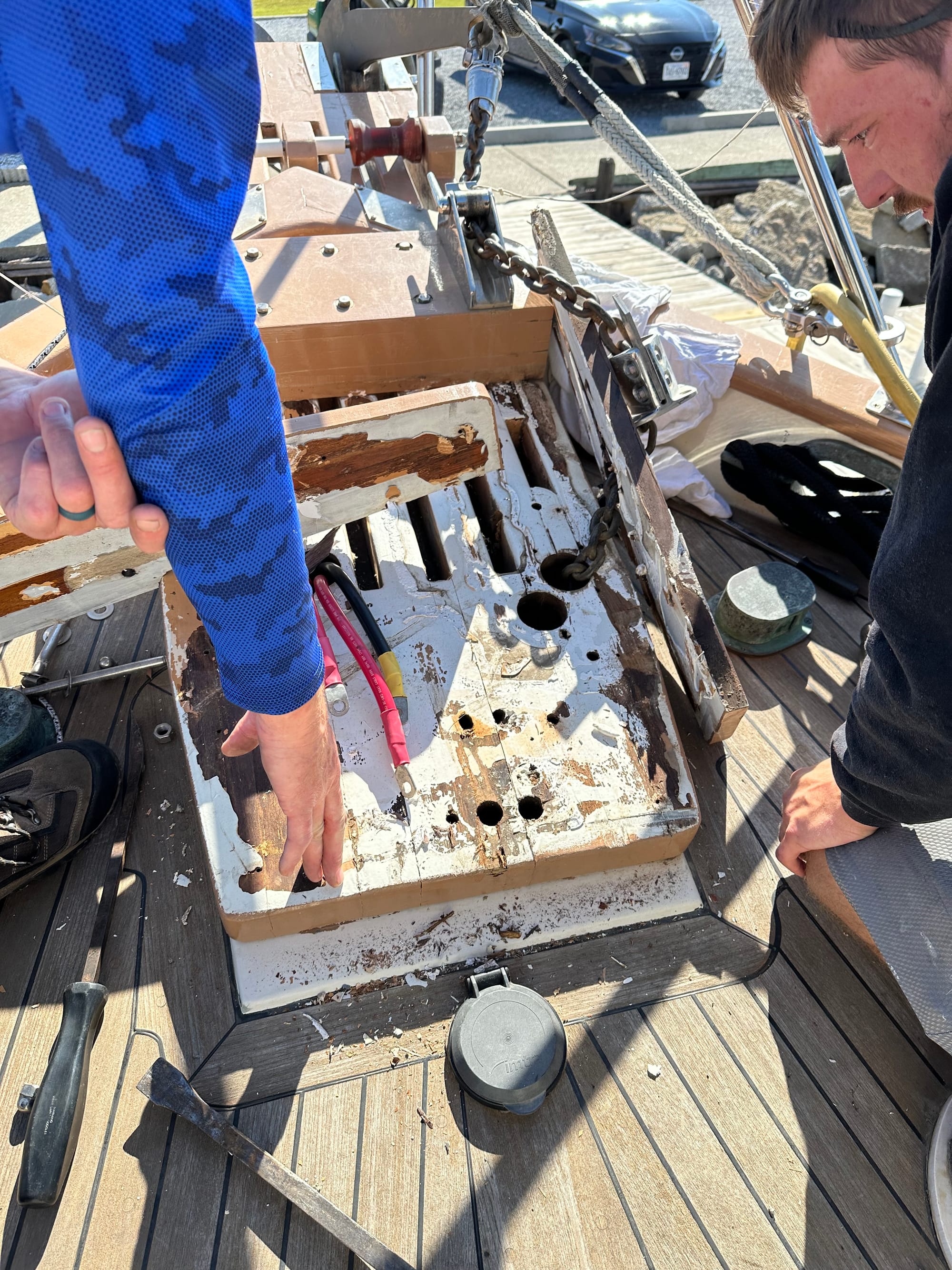 The diver returned and replaced our zincs with new ones. Zincs provide crucial protection by corroding first to protect vital underwater metal parts such as the propeller, shaft, rudder, from galvanic corrosion in saltwater. They work by being the most reactive metal in the electrical circuit, corroding away before the steel, bronze or aluminum parts they are connected to. Another project taken off the to-do list which is on-going.