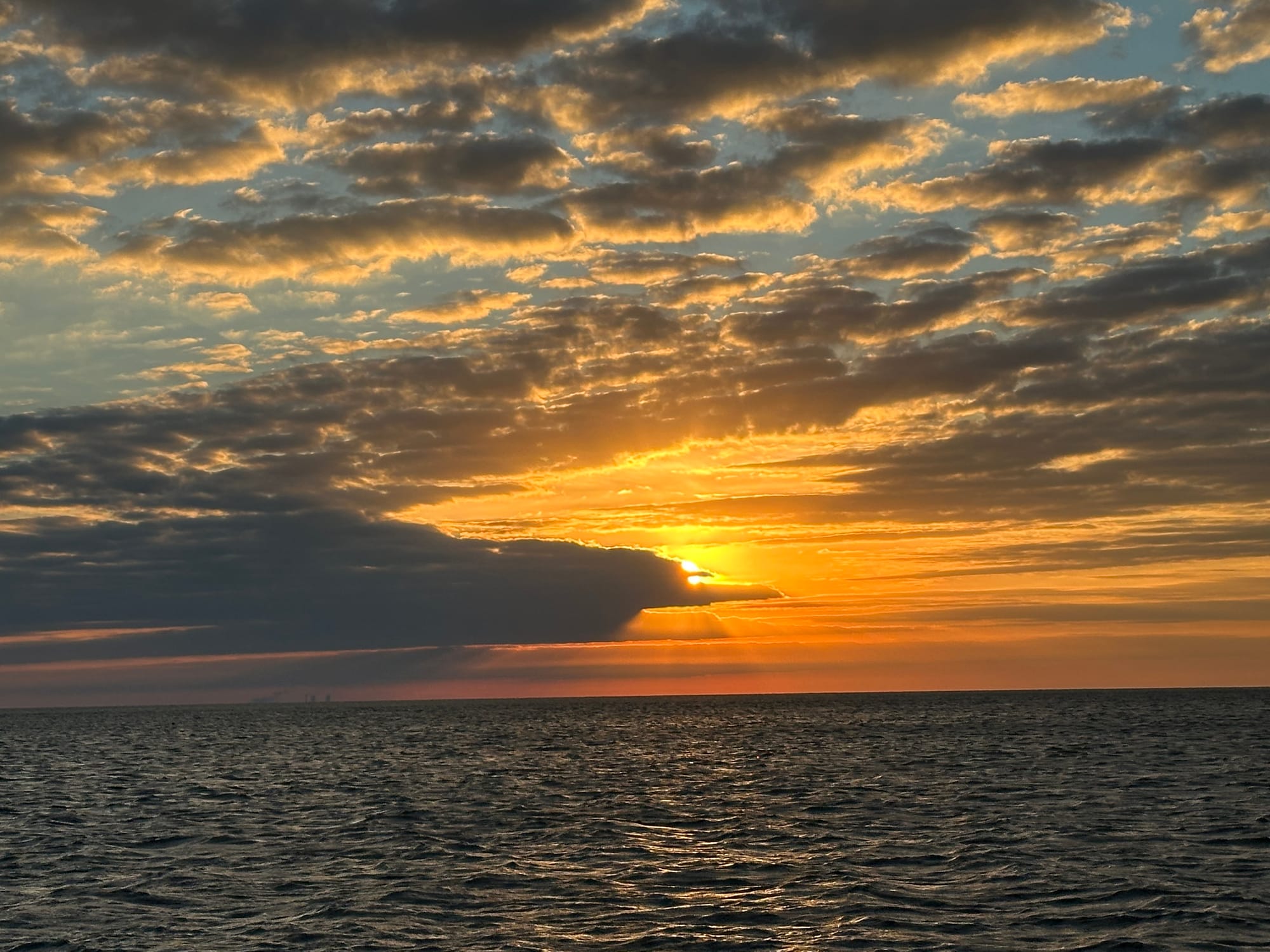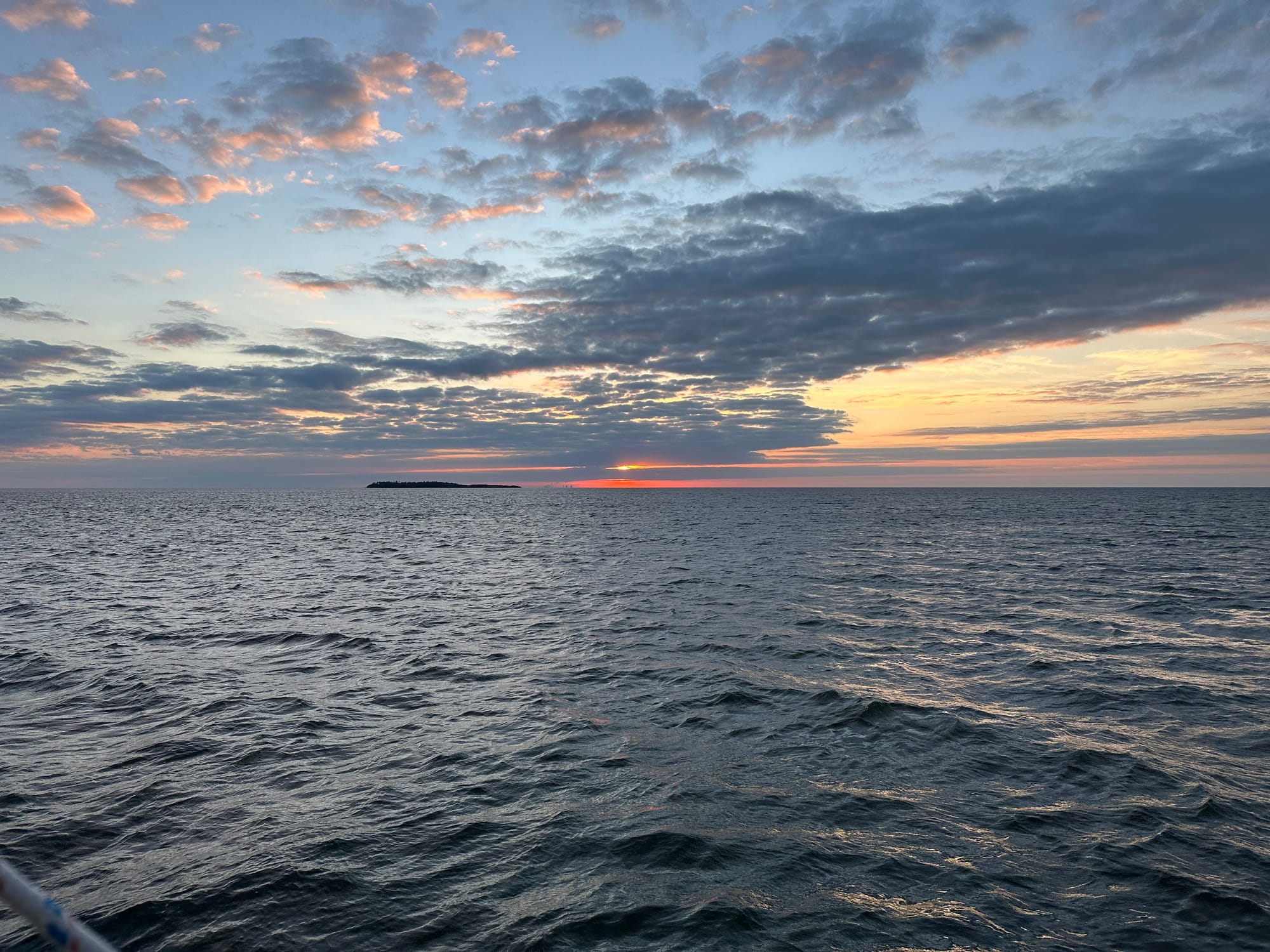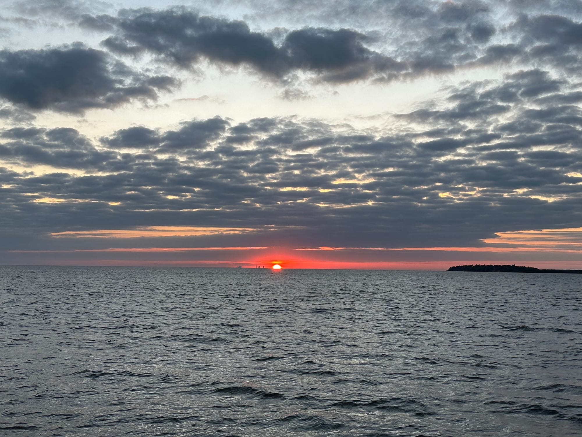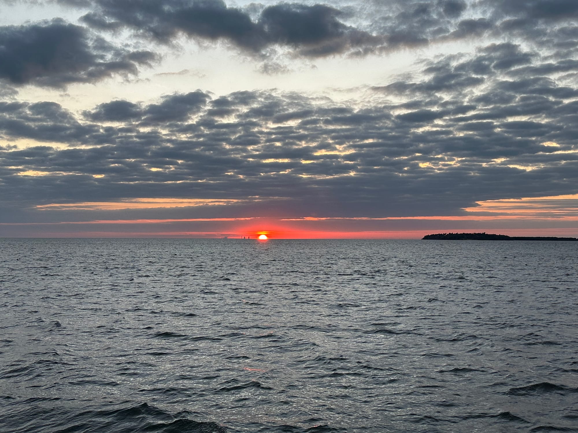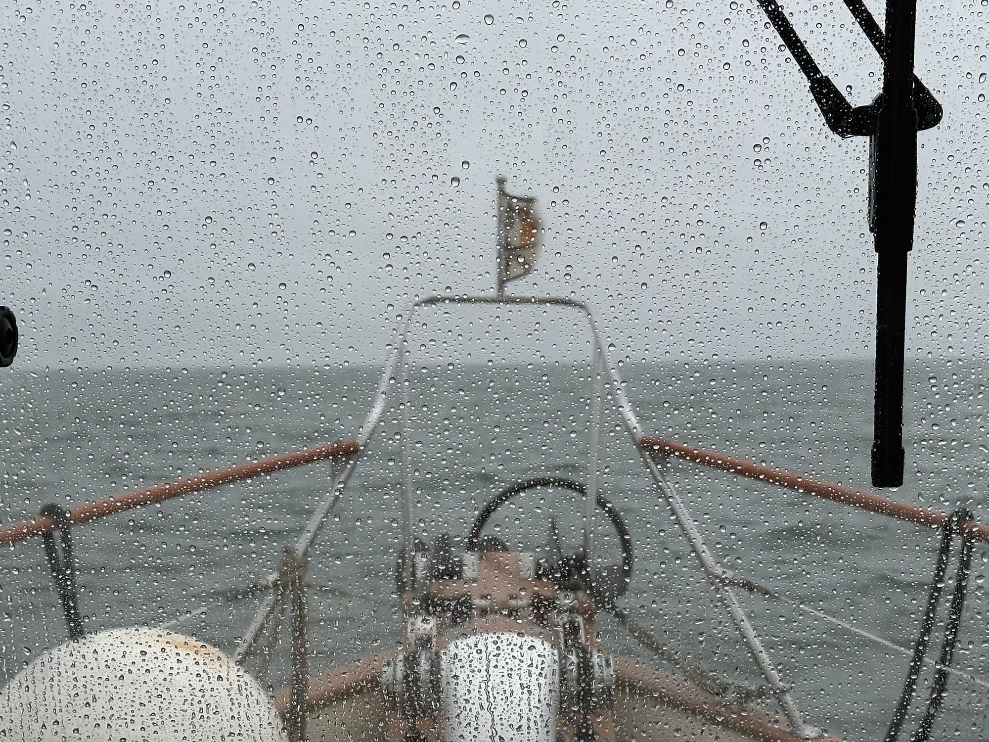 When we were finally on our way, the skies were overcast and it was chilly. As we puttered along, the heavens opened up and it poured non-stop until we arrived at Sun Harbor Marina (7 hours). The winds had also picked up which kicked up the waves a bit. It wasn’t really uncomfortable, but it was a long dreary day.