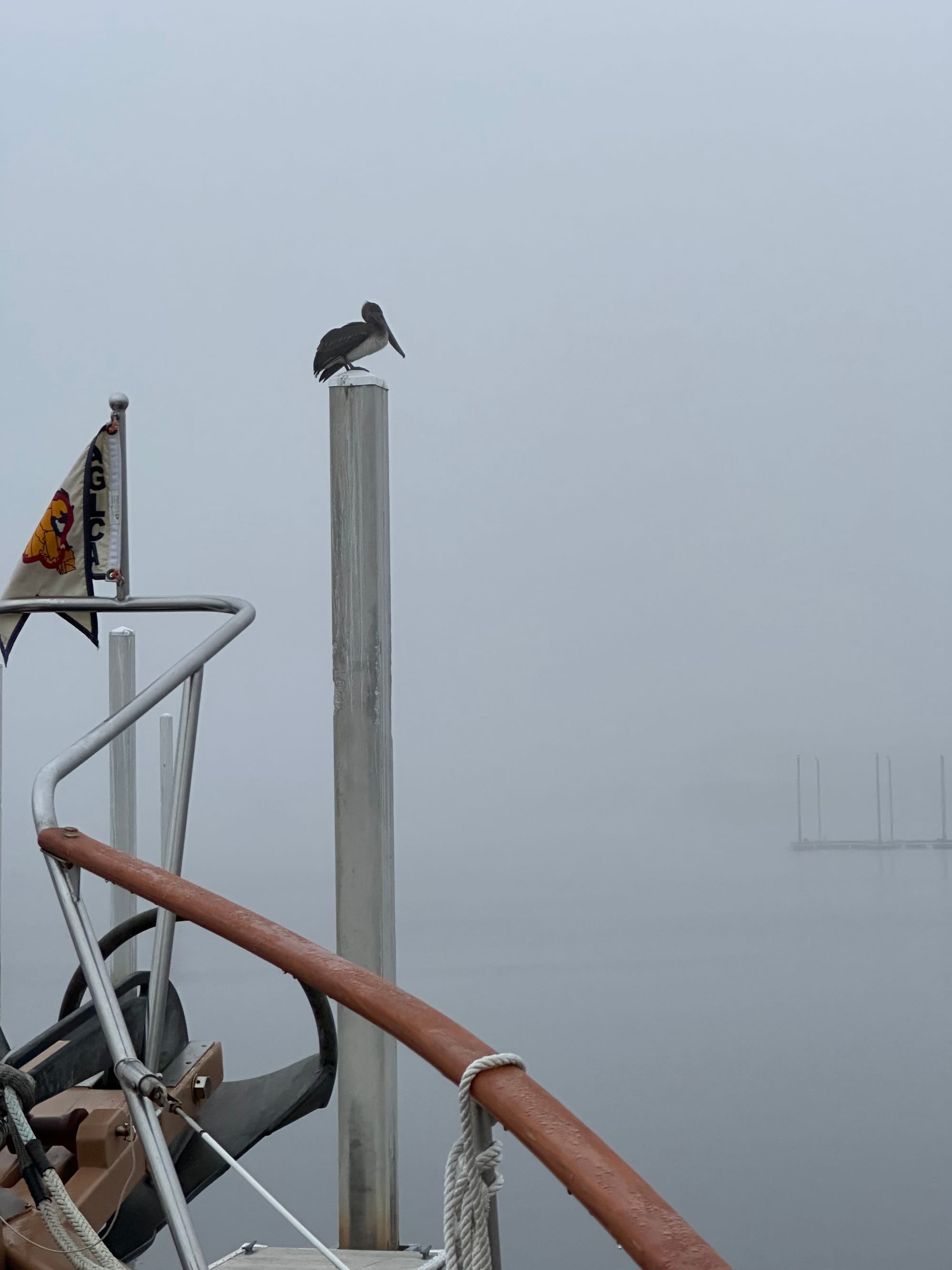 This morning, we were scheduled to leave our slip about 7 at Dead Man Marina, but it was foggy and we opted to wait at least another ½ hour before leaving. The channel was a 3-mile run from the marina out to the Gulf. The fog hadn’t lifted yet and we couldn’t see the channel markers until we were practically on top of them; glad we have the chart plotter to show us the way. We were both hoping there would be no further engine problems as we journeyed along; it was a nagging thought for both of us all day. We had an uneventful run, overcast skies, numerous pelicans and other aquatic birds and several dolphin sightings. Anchored was dropped at Cedar Key. The weather apps show 20+ knot winds all night long from the north. Cedar Key will hopefully block most of the wind and it should be a fairly calm night for us. Tomorrow, we head to Anclote Key; a 58-mile run and drop anchor again. The weather looks good; no choppy water or high winds.
