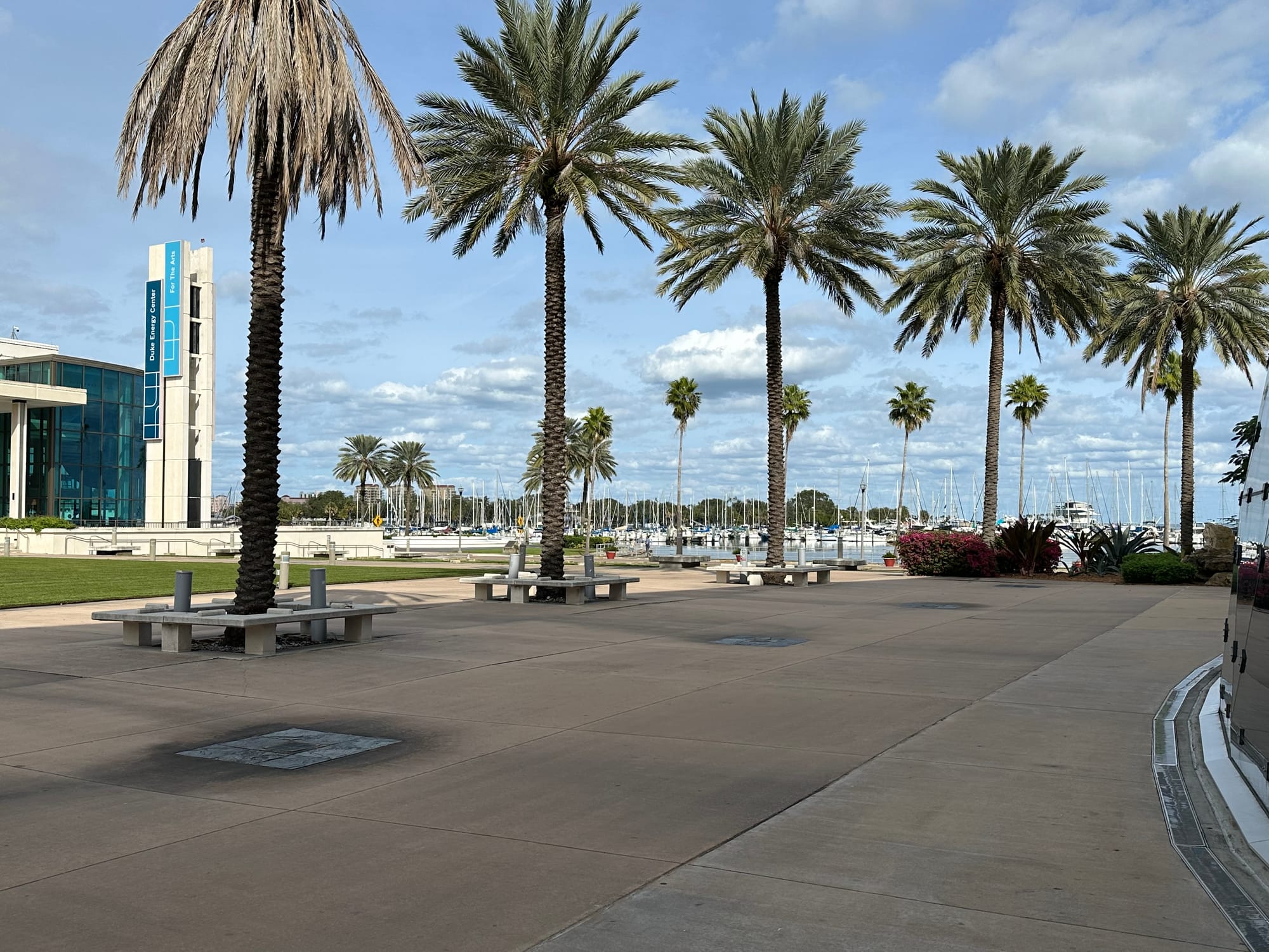 Yesterday, Brian polished all the stainless steel from the fly bridge on down and Lauren went behind him and wiped all the stainless steel down with pledge; it’s supposed to keep the finish protected from the elements a bit longer. We decided to take a joy ride on the Jolly Trolley; there are three different routes to choose from. Both Brian and Paul went on-line to sign up and pay in advance and get the senior discount. Brian said it was not a well thought out site. After thinking we were all set, we all walked up to one of the designated Trolley stops and waited and waited and waited. Asked a few of the park workers milling about and were told we were where we were supposed to be. Well, the Trolley never materialized, so we walked into town and shared a meal at a Tai restaurant; food was delicious. We were the only people in the restaurant. At our dinner, we discussed trying to take the Trolley again in the morning, except this time we would walk up to the transit station (for trolleys and busses); thought we’d have better luck.