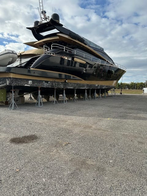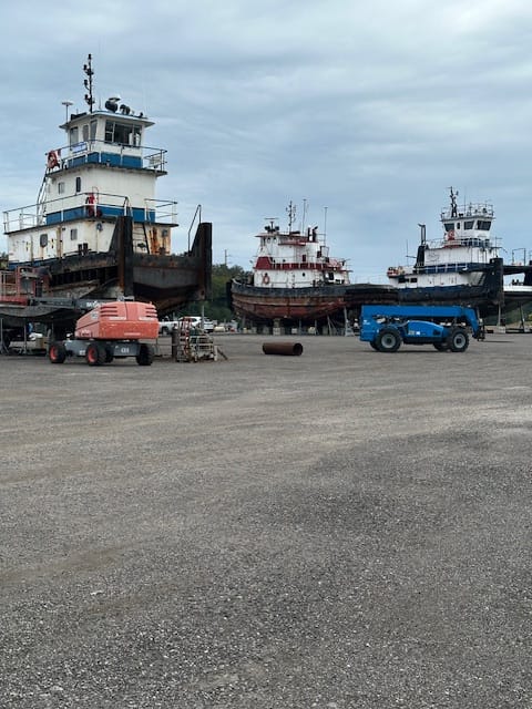 This afternoon while out walking with Heidi around the boat yard, Lauren met Mitch whose boat is behind ours on the wall. He and his wife are from Ontario and have been doing the Loop for 3 years. They are getting work done on the boat and heading to the Bahamas. It sounds like their boat hasn’t made it back to Canada since they left home. Mitch offered to take us to Stuart if we need provisioning; thankful for the offer since it looks like we will be here through next Tuesday. They’re all styles of boats here in the yard; yachts, sailboats, trawlers, houseboats, tugs, a cigarette boat, etc.