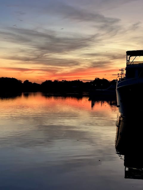 This morning, we left Vero Marina at 6:45 and arrived at our slip in Cocoa Village at 1:30 pm. The sunrise was spectacular, but soon the sky clouded over.
