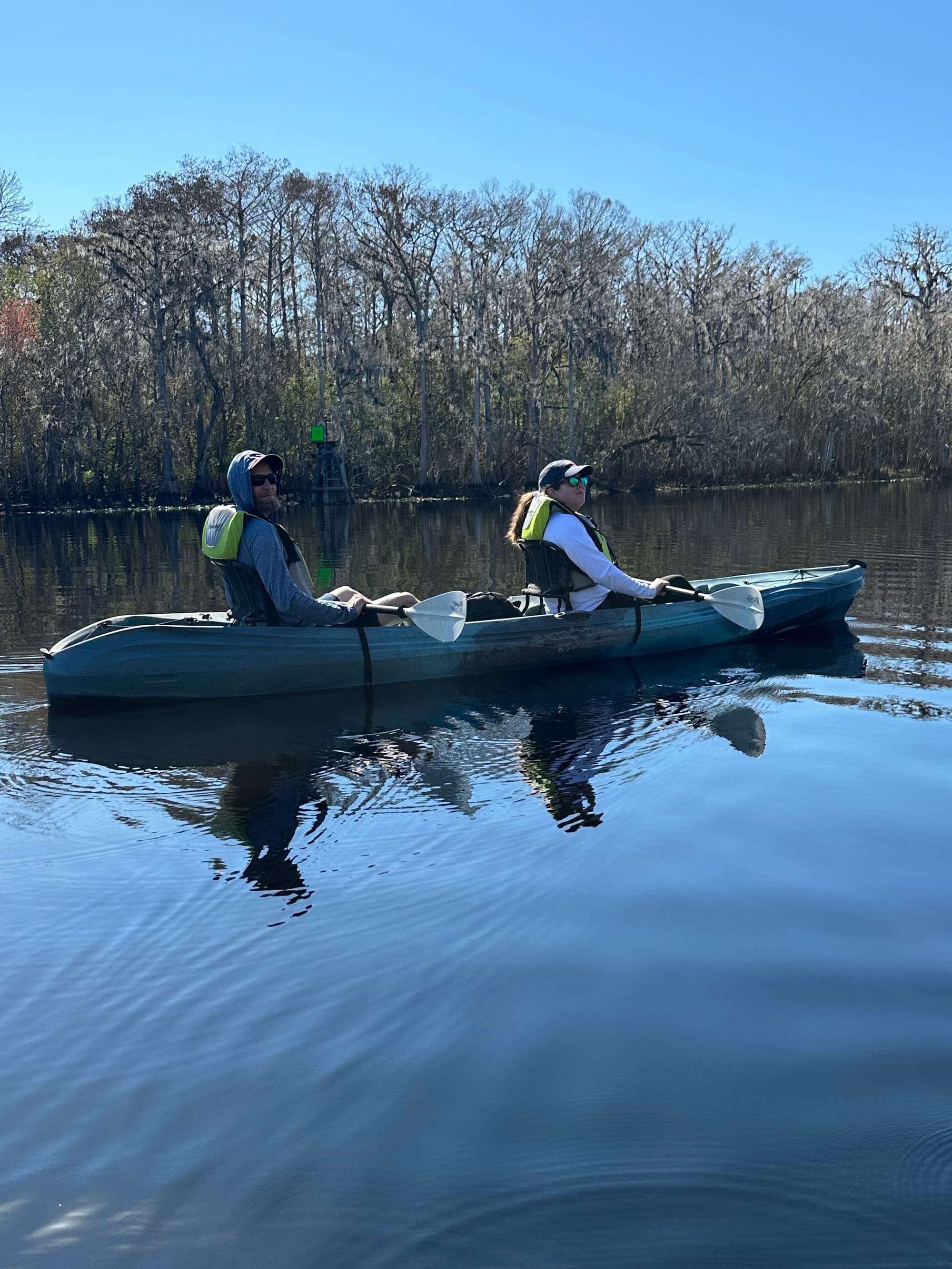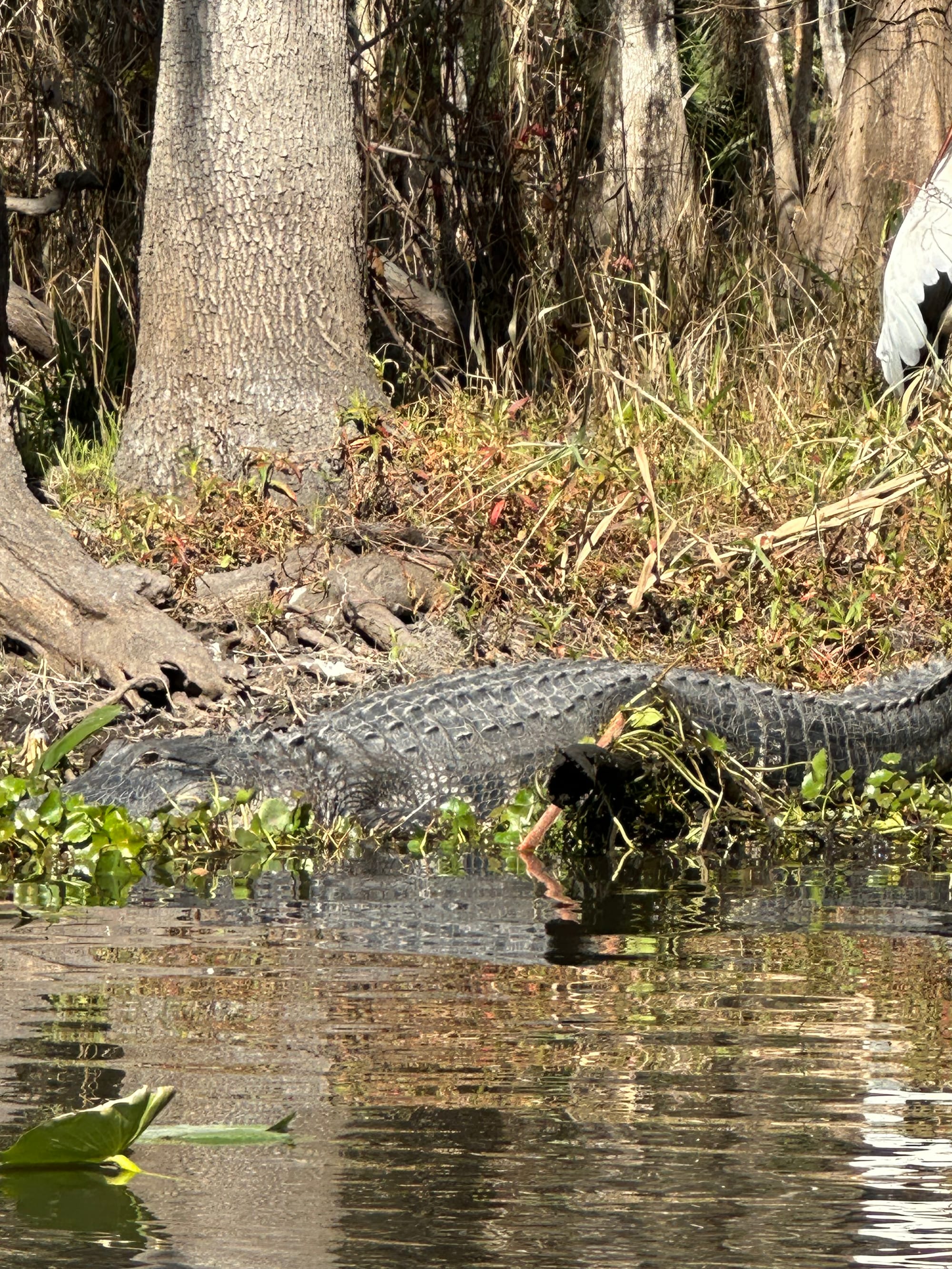 This morning, we had reservations at Blue Spring State Park. We went on a two-hour guided kayak tour; just the four of us and the guide. It was the guide’s first tour; she did fine. We all enjoyed the time on the water seeing alligators, manatee and so many types of birds. The park features a cool-water spring on the St. Johns River. It is one of the most populated places for manatee as the water stays a constant 72 degrees all year round. The park also features paths for hiking, picnic tables, restrooms, a snack shack and an old house on the property that you can tour. It was a perfect day weather-wise to be out kayaking. We stopped at Un Sueno Café for lunch. It’s advertised as Puerto Rican & Mexican cuisine. The restaurant has 4 tables and a small counter. It’s run by a woman who does everything; she takes the order, does all of the cooking from scratch, serves the food and does the cleanup; a one-woman show. The food was delicious and the portions were huge! We all enjoyed our meals.
