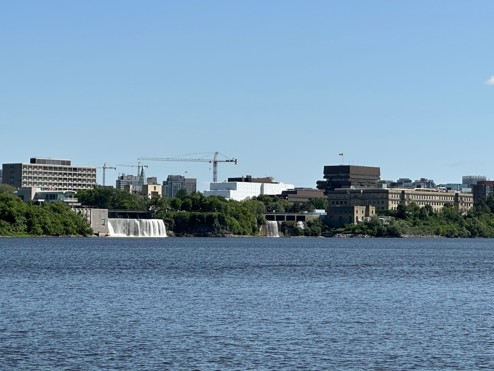 We dropped anchor in the river flowing through Ottawa City. We can see the Prime Minister’s home and Parliament.