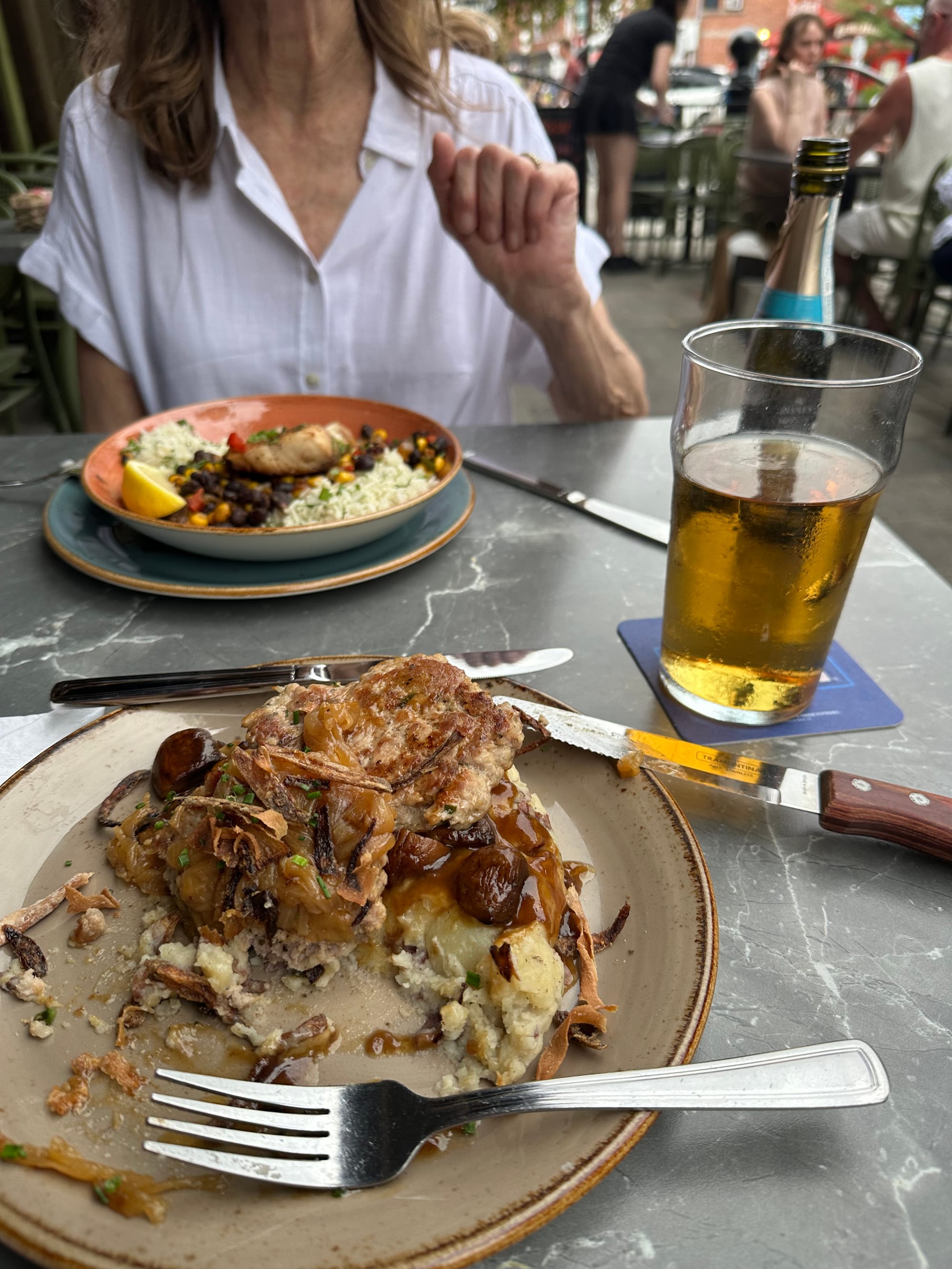 After much-needed showers, we took a walk around town and stopped at an Irish pub for a late lunch, early dinner. Everyone in the joint was speaking English. The waitress said most people here were Anglophone. She was curious about our Loop trip and is hoping someday to travel the US. We hope to be in Ottawa in two to three days.