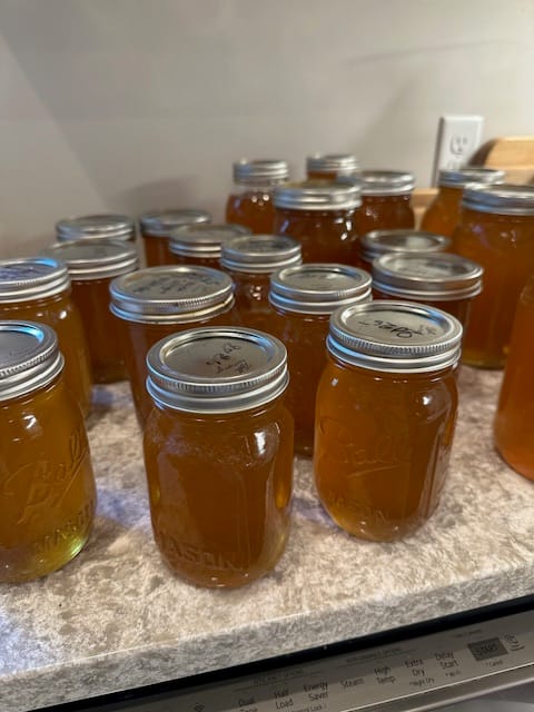 Back on board after a week at home. Left the boat docked in Burlington and left earlier than planned as Lauren was feeling rather ill. It took us only 3 ½ hours to drive home. Once home, we were both off and running. Lauren had numerous medical appointments. To keep her mind off of how lousy she was feeling, she did quite a bit of weeding of our perennial beds, laundry, baked cookies and prepped meals for the boat among her usual household chores. Brian ran numerous errands, took his mother out for lunch, stopped by the apartment building and checked on our tenants, etc. He also discovered that our bee hive that was abandoned by the bees last winter actually had honey in them. So, he spun it out and we got about 4 gallons - yum! After checking in with the kids, it was back to the boat yesterday. Brian unpacked the car and hauled it to the boat and ran errands again before returning the rental vehicle. Lauren unpacked and stored all. Mid-afternoon, we took a walk about Burlington poking through some of the shops. We stopped and had an early dinner of tai food – it was very good, except Brian’s cashew chicken did not have one cashew in the dish, so he was given a small back of cashew to go with his leftovers along with apologies and a discount on our bill.