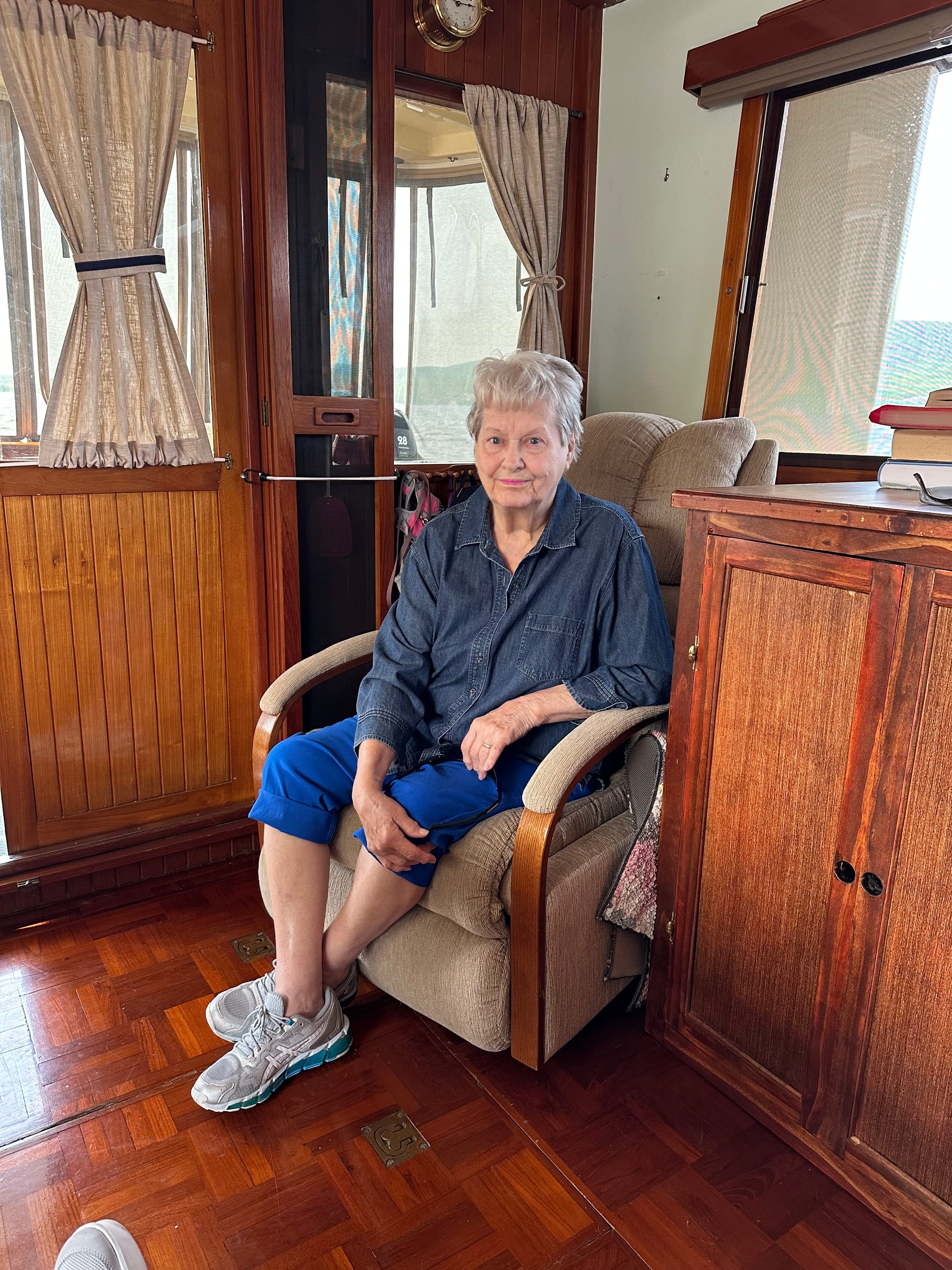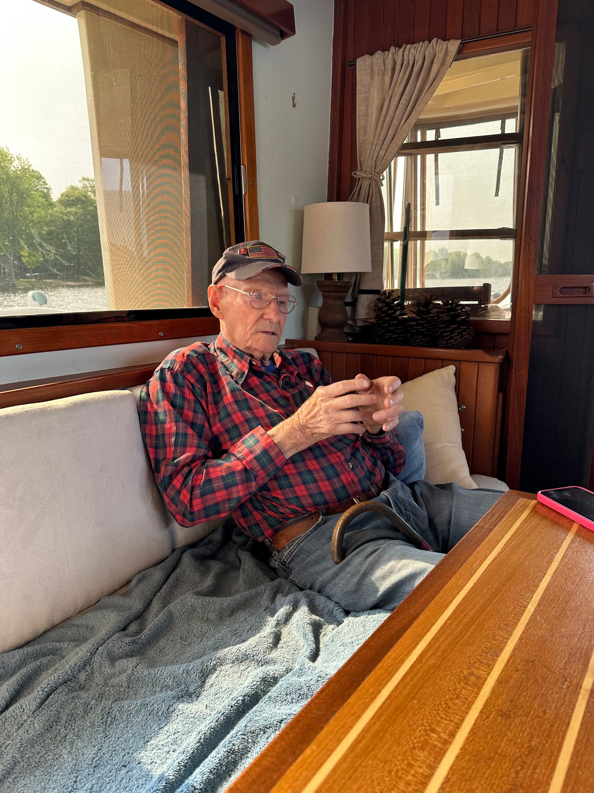 Late afternoon Lauren’s aunt and uncle stopped by to see our boat. We were actually shocked that they walked down the dock, it was rather wobbly and her uncle uses a cane. They even got on the boat un-assisted and seemed quite impressed with it. After a short visit, we walked up to the marina for dinner. Apparently, Lauren’s uncle is known as the “Mayor” of Willsboro; they are both well-liked. Lauren’s uncle worked on small engine repairs; numerous other miscellaneous repairs and looked after camps for years. He could repair and fix just about anything. Uncle Milton fought in Korea with the Army Airborne and has numerous medals and injuries. Many people stopped by to chat with them. It was sad saying “goodby”. Uncle Milton wants to stop by and watch us leave tomorrow.